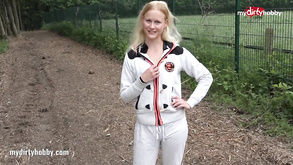 Dirty teasing mommy seduces stroking guy in locker room